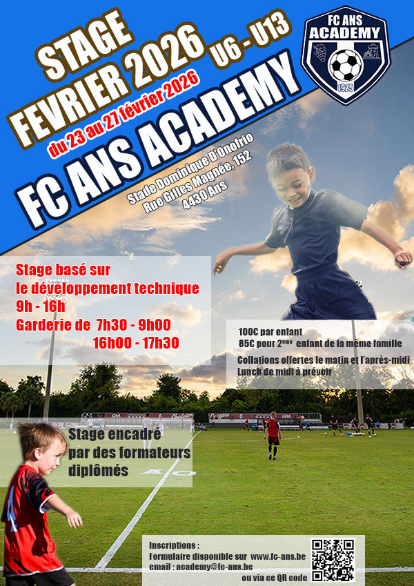 Formulaire d’inscription au stage de février 2026 organisé par la FC Ans Academy